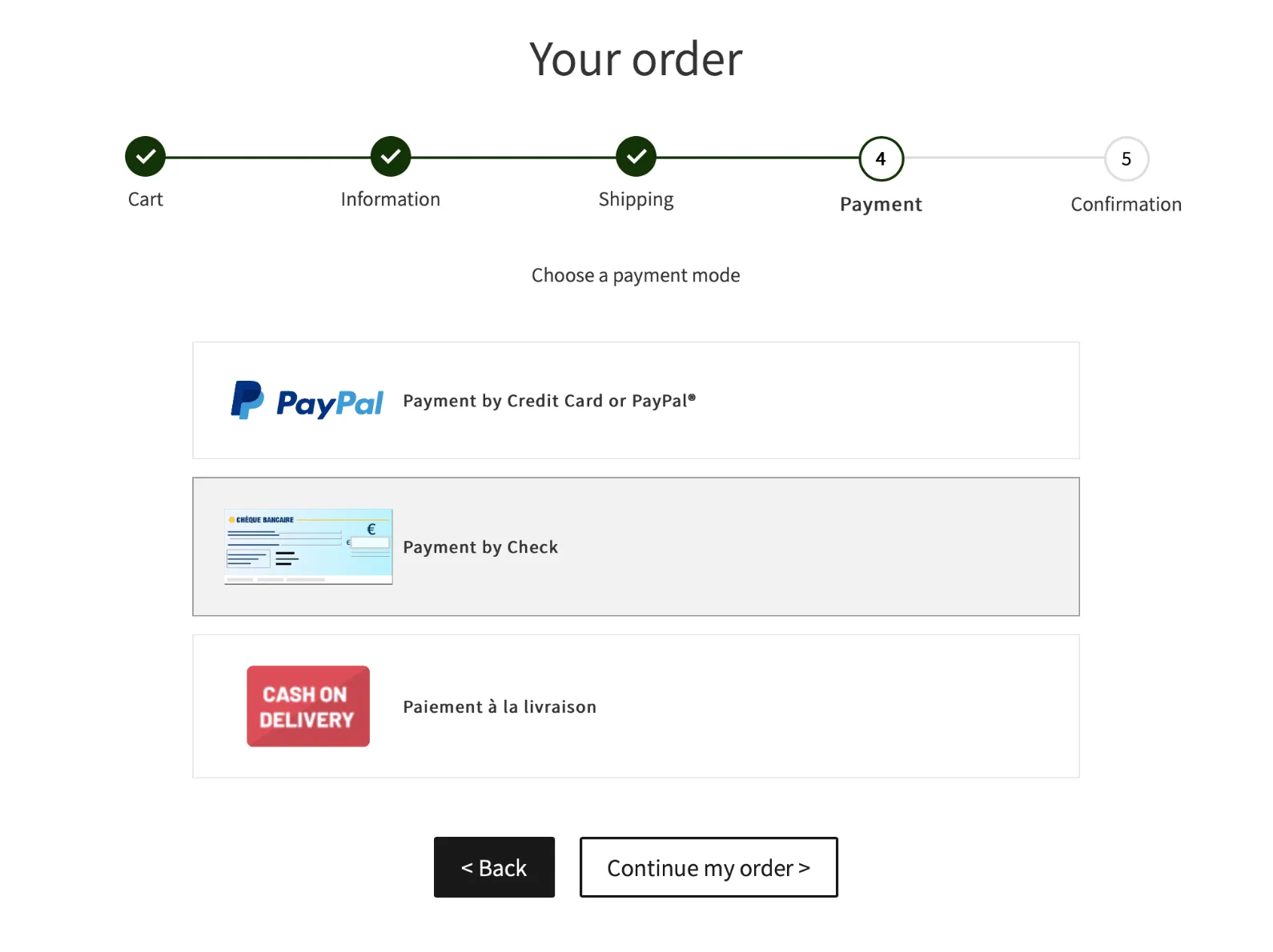 - Lorsqu'un bouton "Acheter" est cliqué par le visiteur, il est directement redirigé sur l'étape de checkout pour finaliser sa commande.