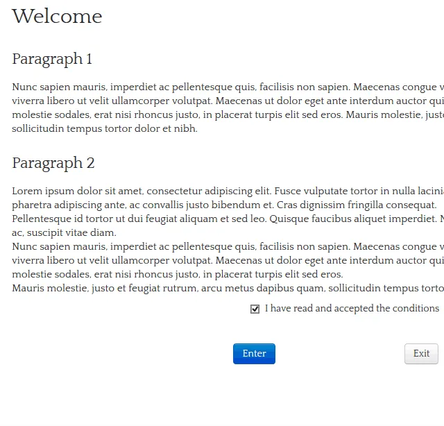 Тема «Договор» - это страница, на которую будут перенаправляться все посетители вашего сайта, зашедшие впервые. Здесь будет отображаться предупреждающее сообщение или запрос явного согласия посетителя, прежде чем тот получит доступ к сайту.