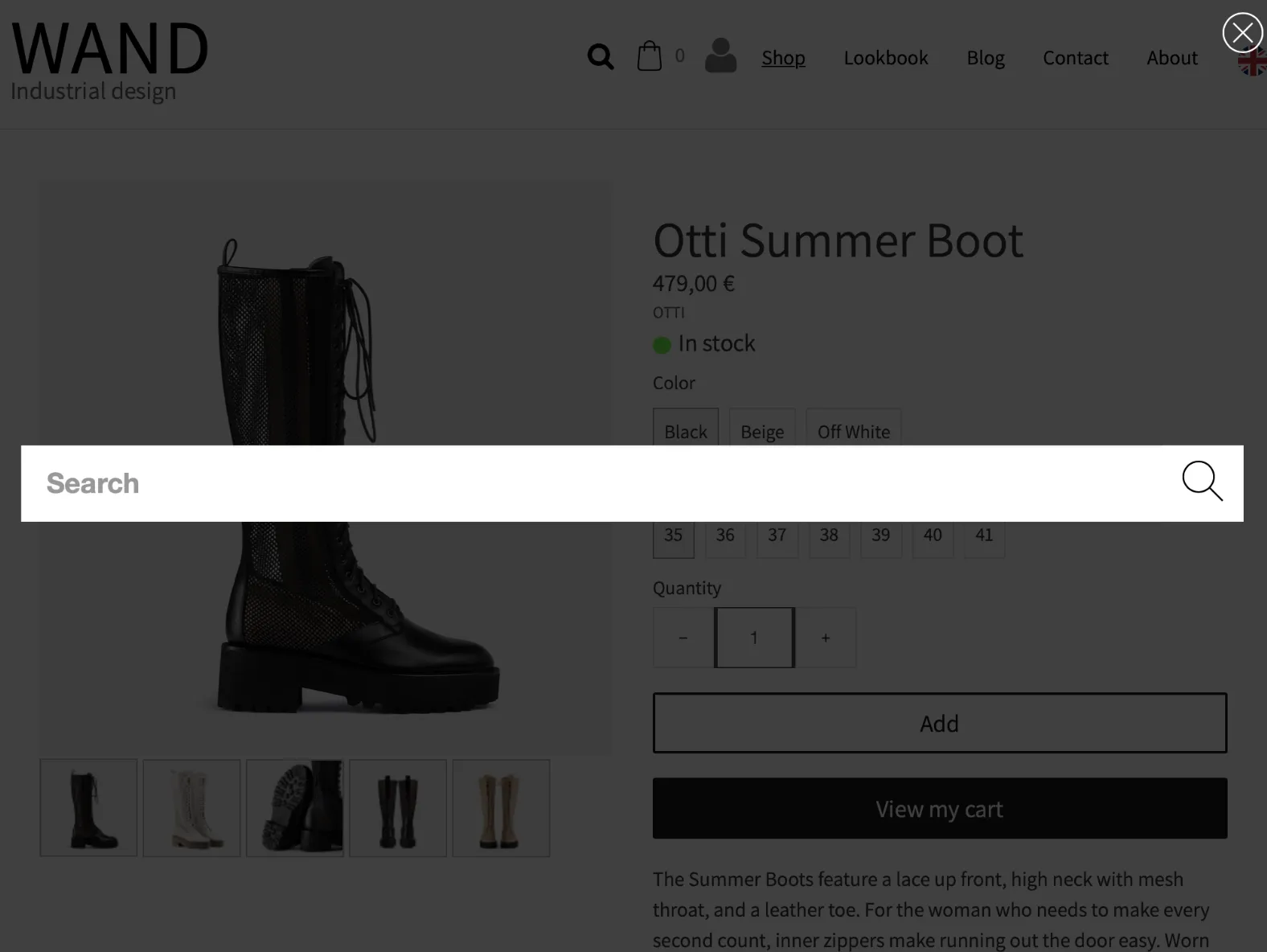 Per risparmiare spazio nel tema / design del tuo sito (soprattutto su smartphone) il campo di ricerca del tuo sito può ora apparire a schermo intero dopo aver fatto clic sull'icona di ricerca. Per attivare questo, vai su CSS Editor del "tema", selezionare l'elemento "casella di ricerca" e attivare l'opzione "Pulsante di ricerca" e il suo "Visualizza il campo di ricerca dopo aver fatto clic su".
