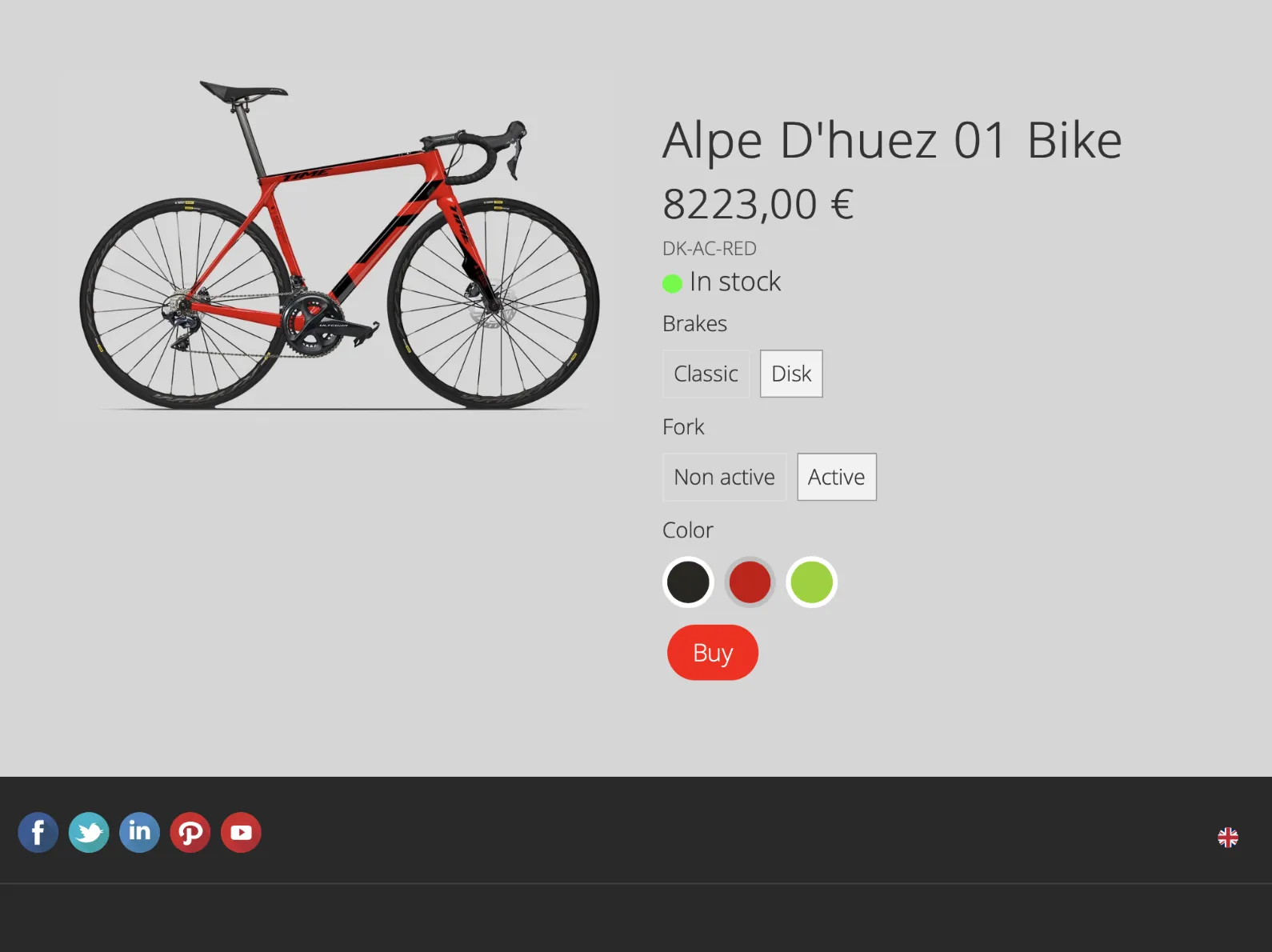 Il modello BikeProd è un esempio di un sito utilizzando la modalità di prodotto singolo